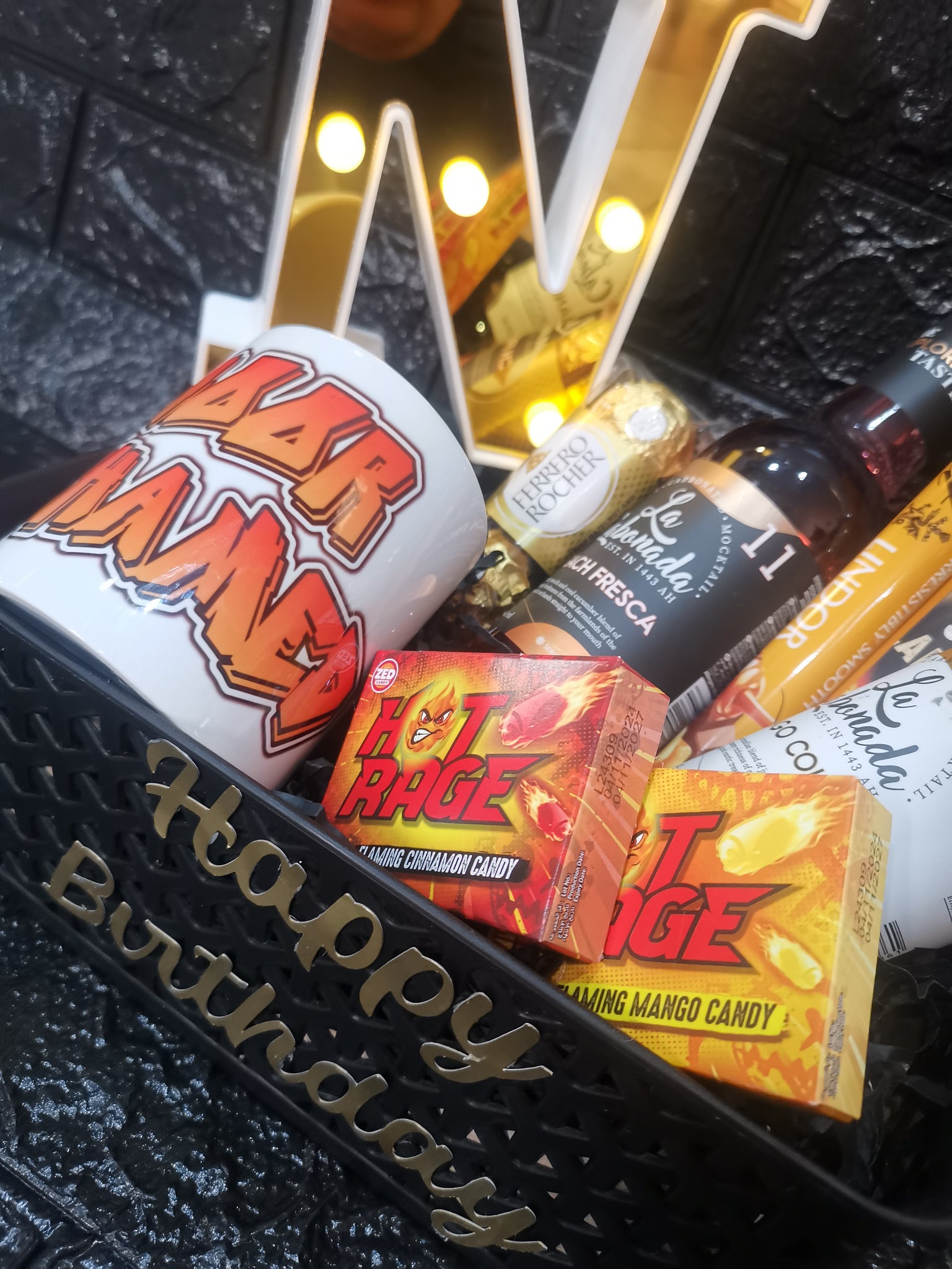Standard baskets include all snack items and a personalized mug